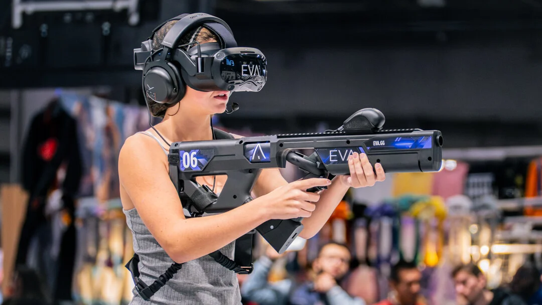 EVA repousse les limites du gaming en créant des espaces de jeu physiques équipés des technologies VR les plus avancées. Dans ces arènes de 5400 sq ft, les joueurs s’affrontent ou coopèrent sur des jeux exclusifs conçus par EVA.